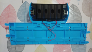 Avec l’arrivé de ce nouveau circuit, s’est de nouveau posé la question des piles. Trois piles rechargeables et une pile alcaline sont trouvées pour être insérées dans leur logement. Les voitures avancent, le boitier fait de la musique et les fonctions interactives opérationnelles. Mais je vois bien que les voitures ne sont pas si rapides que cela et que les piles vont se décharger. De plus, 3 piles rechargeables, c’est une perte de puissance car, une pile alcaline c’est 1,5Volt alors qu’une rechargeable c’est 1,2V soit 0,3Vde déficit par pile. Soit presque un volt avec mes 3 piles. Après vérification au voltmètre sur le boitier qui contient les piles j’ai obtenue 5V. Ma pile alcaline ne doit pas être de première fraicheur.