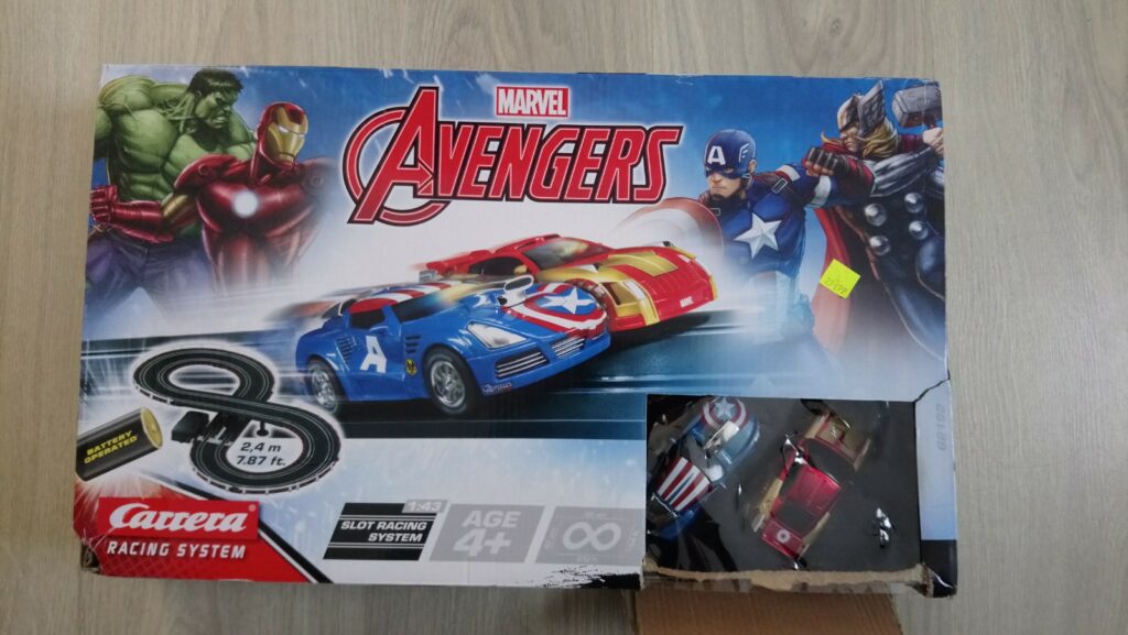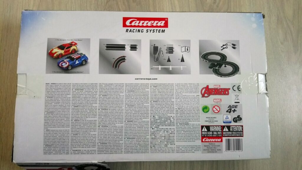 Hors catalogue Carrera, la gamme CARRERA Racing System est une série de circuits à piles (4×1,5V = 6V) plutôt destiné au marché Américain, nous pouvons de temps en temps voir des coffrets en magasin. La particularité du Racing système est qu’il utilise le même système de rails que le GO.
