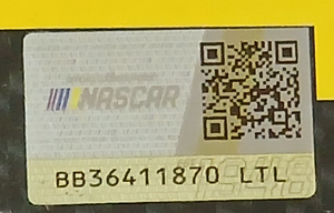 On peut parler du petit autocollant avec un hologramme NASCAR qui signifie que ce produit est un produit officiel. Le QR Code associé pointe sur le site www.nascar.com.