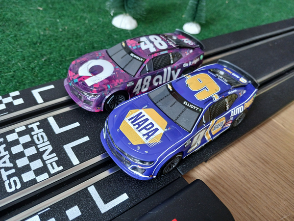 | Alex Bowman, n°48 5 tours Vmin : 312.97 cm/s Vmax : 318.07 cm/s Moyenne : 315.06cm/S | Chase Elliott, No.9 5 tours Vmin : 324.17 cm/s Vmax : 347.51 cm/s Moyenne : 334.76cm/S |