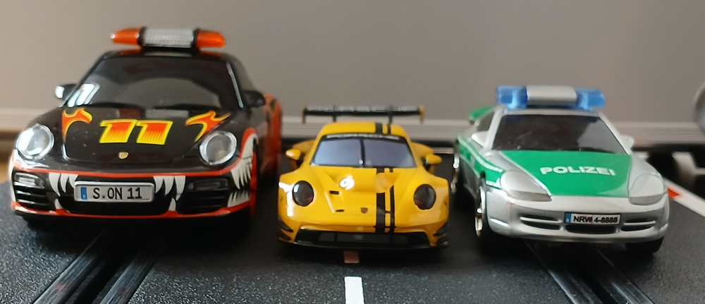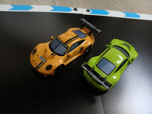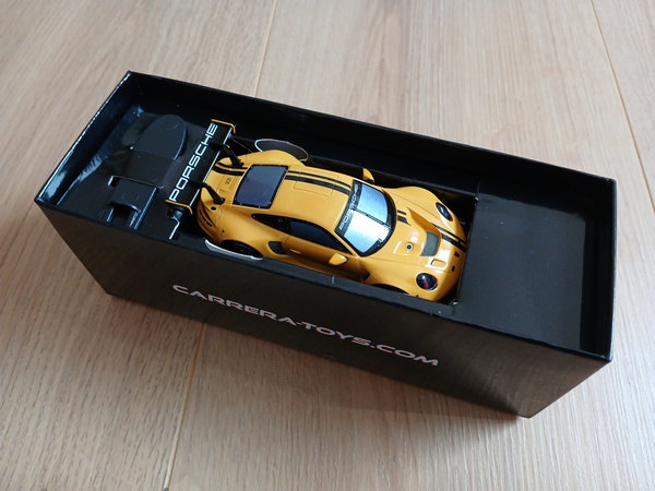 La Porsche 911 dispose d’un large aileron arrière et de deux rétroviseurs. Après plusieurs courses tous sont entiers. Les voitures HYBRID ne sont pas aussi rapides que les voitures de circuits routiers. Pas de sortie de piste à haute vitesse. Aucun risque pendant la course. Si vous cassez un élément ce sera lors d’une manipulation maladroite ou si vous jouez sur une table et qu’elle tombe au sol.