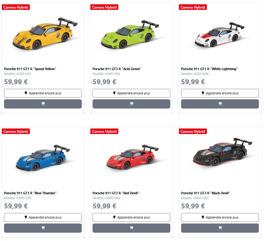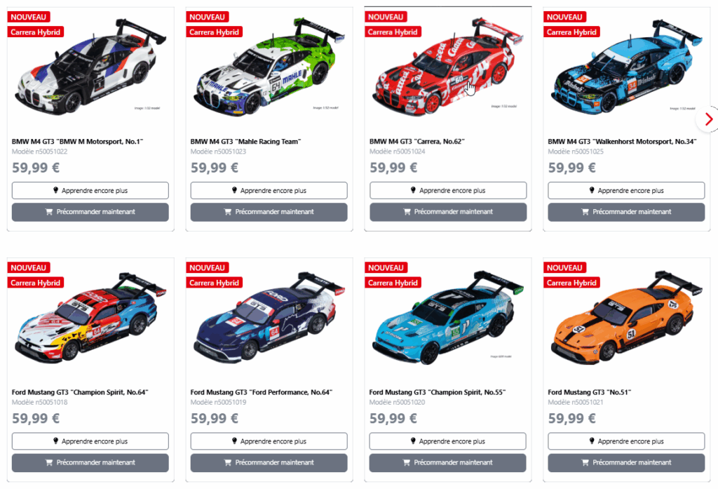 Une voiture CARRERA HYBRID n’a pas les même caractéristiques qu’une voiture de slot.