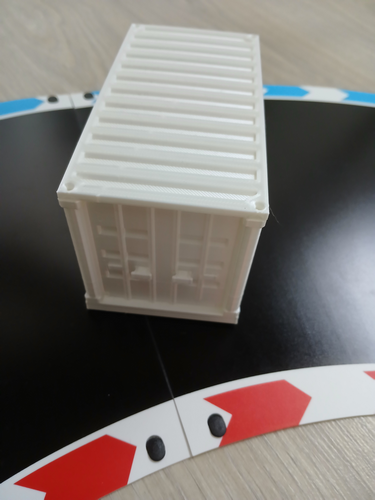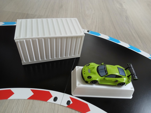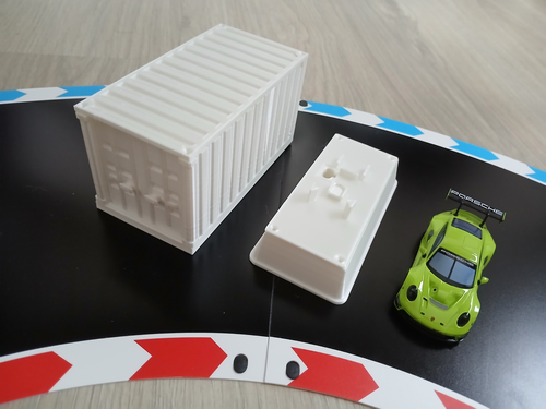Des fans ont aussi créé des boites de protection pour véhicule. J’ai imprimé l’une d’entre elle qui ressemble à un container et permet la charge avec un système qui intègre le cordon de charge.