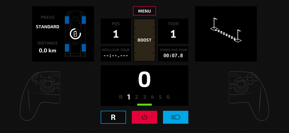 Lorsque vous conduisez une manette est dessinée en arrière plan de l’interface.