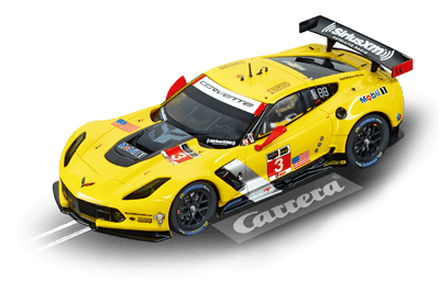 La voiture de course américaine numéro 1 Avec un moteur V8 de 5,5 litres, la Chevrolet Corvette C7.R est une attaquante lors des prestigieuses courses telles que Daytona ou Le Mans an. Au volant de la Corvette, le pilote Oliver Gavin. Cette voiture de course GT s’inspire de la Corvette C7 Stingray et y rajoute de nombreuses innovations techniques. Le clou absolu est le nouveau châssis en aluminium dont la rigidité est de 40 pour cent plus élevée que celle du modèle précédent, le C6.R. La Chevrolet Corvette C7.R DIGITAL 132 Carrera remporte tous les suffrages grâce à ses feux avant, sa fonction de feux arrière/de freinage et ses finitions exactes reflétant l’originale. Cette voiture Carrera peut être codifiée individuellement, elle est contrôlable de manière numérique et elle apporte un authentique plaisir de conduite. [texte Carrera]