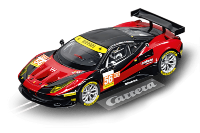 Une puissance à l’état pur et un design sympathique Ce bolide impose le respect rien que par son aspect extérieur : le design noir et rouge impressionne au premier coup d’œil. Une chose est sûre : la Ferrari 458 Italia GT2 a été conçue pour gagner ! Mais la maîtrise de cette voiture nécessite des efforts considérables : le pilote doit littéralement écraser le levier de vitesse chaque seconde sans embrayer ! La Ferrari 458 Italia GT2 « AT Racing N°56 » Carrera DIGITAL 132 remporte tous les suffrages grâce à ses feux avant, sa fonction de feux arrière/de freinage et ses finitions exactes reflétant l’originale. La voiture Carrera peut être codifiée individuellement, est contrôlable de manière numérique et offre un véritable plaisir de conduite. [texte Carrera]