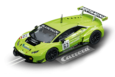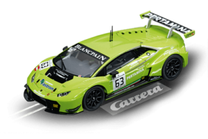 Un gagnant vert pomme Lors de sa première saison, la puissante Lamborghini Huracán GT3 a remporté sa première victoire, controversée mais cependant très justifiée. Alors qu’à Spieberg, une pénalité a empêché la montée sur le podium au premier tour, la deuxième course s’est déroulée sans problème, si bien que la Lamborghini Huracán GT3 au numéro 63 a pu remporter une puissante première victoire dans la course de sprint. Une véritable gagnante ! La Lamborghini Huracán GT3 « N°63 » Carrera DIGITAL 132 remporte tous les suffrages grâce à ses feux avant, sa fonction de feux arrière/de freinage et ses finitions exactes reflétant l’originale. La voiture Carrera peut être codifiée individuellement, est contrôlable de manière numérique et offre un véritable plaisir de conduite. [texte Carrera]
