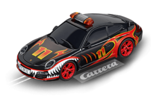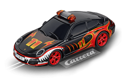 Attention les yeux – on se retourne au passage de ce véhicule original ! La Porsche 911 Carrera « No. 11 » s’impose par ses couleurs exceptionnelles avec design à flammes oranges et rouges sur fond noir et dents de requin autour des pneus rouge feu. La sirène sur le toit y apporte la touche finale. Ce modèle original comprend une carrosserie ultra robuste spécialement adaptée aux enfants – pour s’adonner à des courses-poursuite endiablées qui feront honneur à son allure sauvage ! La Porsche 911 Carrera « No.11 » est équipée de phares avant et arrière et elle s’impose par ses finitions fidèles. Cette voiture Carrera à commande numérique peut être codée de manière personnalisée pour une course pur plaisir. [texte Carrera]