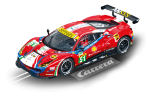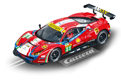 Impossible de manquer cette voiture de sport ! La nouvelle Ferrari 488 GT3 « AF Corse, No.51 » abrite sous son capot coloré une technologie tout en finesse. La combinaison de différentes couleurs vives accroche tous les regards. Ce modèle se base sur la Ferrari 488 GTB, son ancêtre dans la course automobile étant la 458 Italia GT3. Contrairement à ses prédécesseurs, équipés du moteur atmosphérique V8, la nouvelle 488 GT3 a sous le capot un moteur turbo V8. Ce bolide extraordinaire prend le départ pour l’écurie italienne « AF Corse ». La Ferrari 488 GT3 « AF Corse, No.51 » est équipée de phares avant et arrière et elle s’impose par ses finitions fidèles. Cette voiture Carrera à commande numérique peut être codée de manière personnalisée pour une course pur plaisir. [texte Carrera]